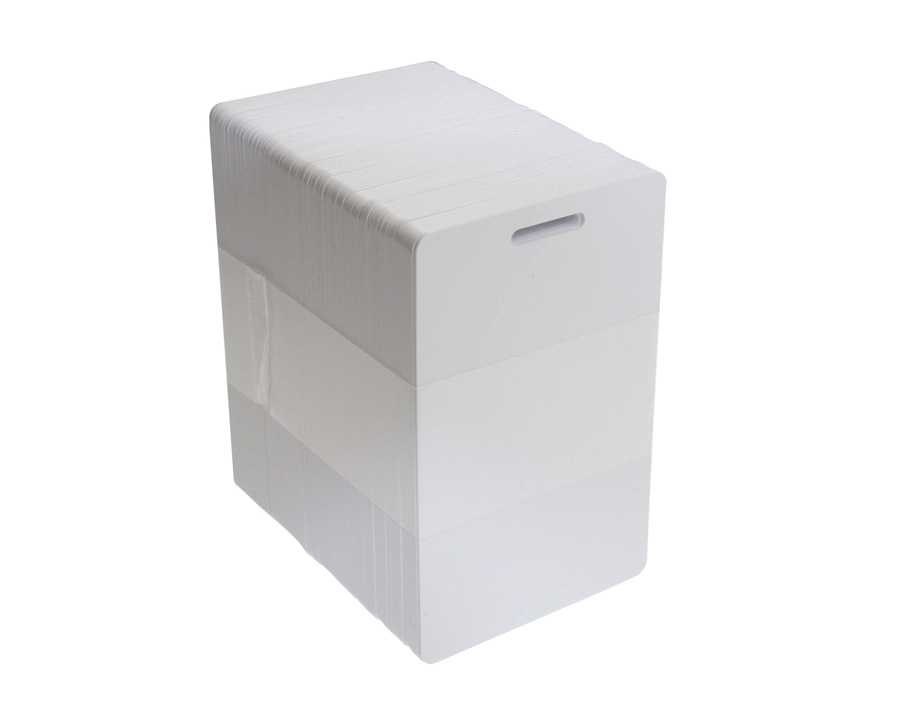 Tarjetas blancas perforadas vertical, tarjetas de plástico blancas perforadas con ranura ovalada.